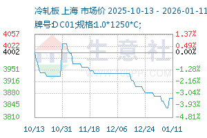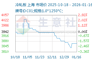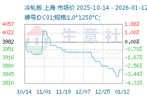 | 牌号:DC01;规格:1.0*1250*C; | 本钢 | 3870元/吨 | 3870 | 0 | 2026-01-13 |
